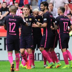 Barça: Ter Stegen; Sergi Roberto, Mascherano, Mathieu, Digne; Rakitic, Busquets, Denis; Rafinha, Luis Suárez y Neymar.