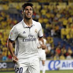 Se acumulan los problemas para Zinedine Zidane. Dos nombres sobrevuelan la cabeza del técnico francés desde que llegara al banquillo del Real Madrid: Isco y ... James Rodríguez. El entrenador del equipo blanco sufre a diario el eterno debate de si debe alinear al malagueño o al colombiano y mientras reparte minutos entre los dos -con una ligera ventaja en la actualidad para Isco-, aparece otro nombre para ampliar sus quebraderos de cabeza: Marco Asensio. El joven centrocampista mallorquín está aprovechado cada minuto que le concede Zidane desde que regresó de su cesión en el Espanyol. Así lo demuestra el hecho de haber marcado cada vez que se ha puesto la camiseta del Real Madrid por primera vez en una competición. Lo hizo ante el Sevilla en la Supercopa de Europa, frente a la Real Sociedad en Liga y el martes contra el Legia de Varsovia en la Champions. Pleno.