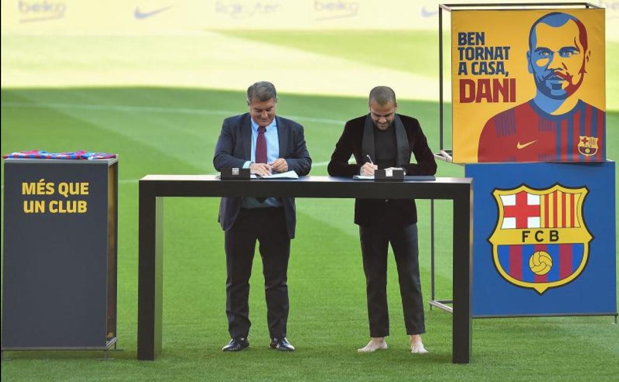 Distina fue también su puesta en escena. Su llegada despertó caras de asombro entre la muchedumbre que asistió al Camp Nou al mediodía de una jornada laborable. Las expresiones y muestras de cariño eran más propias de 'Bienvenido Mister Marshall'. Con el regreso de Dani Alves vuelven los años de bonanza o eso es al menos lo que pretende despertar el presidente Joan Laporta, que se mostró en todo momento exultante ante el fichaje de uno de los protagonistas del 'Pep Team' que arrasó de la mano de los Messi, Xavi, Iniesta o el propio lateral brasileño.
