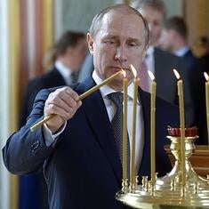 Putin enciende unas velas.