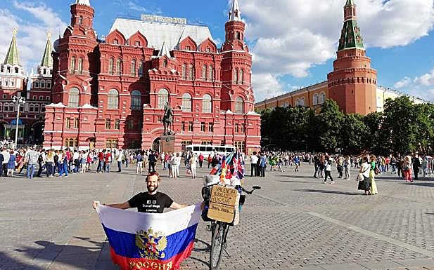 Llega el inicio de cada año y todos nos marcamos objetivos. Unos apuntarse al gimnasio, otros dejar de fumar. Roberto Fernández se prometió que si ... a los 30 años no conseguía un trabajo que le satisficiera, echaría a volar por el mundo. Y lo hizo. No por el aire, sí en bicicleta. Después de once meses viajando por el mundo, encontró un nuevo reto en el Mundial de Rusia. No se lo pensó dos veces y tras estar rodando durante dos meses y medio por media Europa ya se encuentra en Moscú para disfrutar del ambiente de uno de los acontecimientos deportivos más impactantes del mundo.