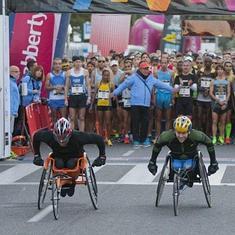 Los atletas en sillas de ruedas, fuera del podio en el Maratón de Málaga