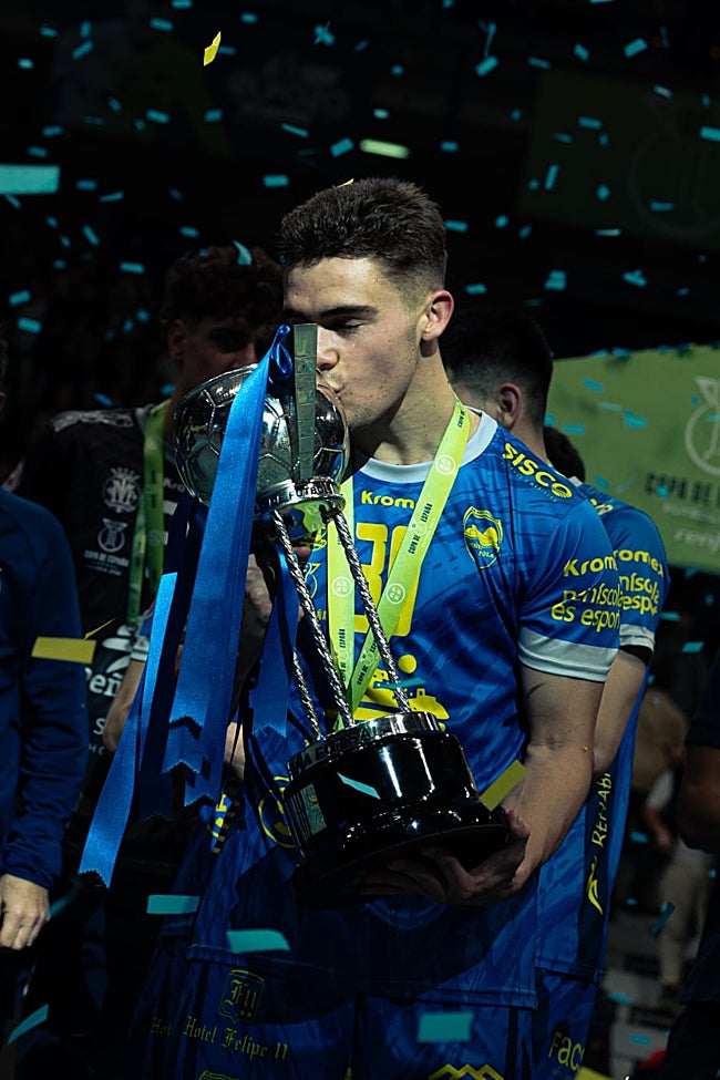 Y fue en esta etapa cuando el joven malagueño vivió uno de los momentos más especiales de su carrera deportiva: su primer título, la Copa del Rey de 2024. No fue baladí su concurso, fue reconocido como 'MVP' del torneo destacando especialmente su icónico doblete en la semifinal, ante el Peñíscola, clave para acceder a la pelea por el título. «Cuando llegué al Peñíscola aún había gente que me guardaba rencor por eso», cuenta en tono jocoso el malagueño, que no tardó en ganarse el respeto de su nuevo hogar. «Aquel año, para mi, fue el mejor. Ya estaba ganando minutos en Primera, fui con la selección sub-21 y creo que di el 'boom' con esa Copa. Para mi, fue un título muy especial, mi primer título y además me nombraron 'MVP', así que fue increíble», recuerda.