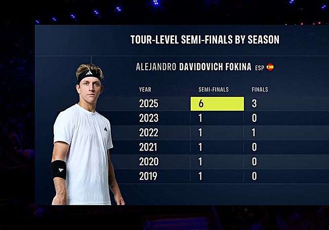 Alejandro Davidovich alcanzó este viernes su sexta semifinal del curso. Tres de las cinco disputadas ya desembocaron en una final, las del ATP 250 de ... Delray Beach y los 500 de Acapulco y Wasghington, y en el primero y último de los casos hubo hasta bola de partido, pero sin título. Ya empieza a tocar.