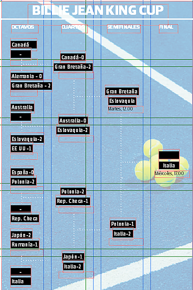 En la primera cita Tatiana Garbin cambió su apuesta para la número dos y apostó por Lucia Bronzetti (78ª) tras la derrota en cuartos de Elisabetta Cocciaretto ante Japón, y lo mismo hizo Dawid Celt al jugársela de nuevo con Magda Linette (38ª) y no con Frech, perdedora el sábado. Pese al rotundo 6-1 y 6-2 de la polaca en el único precedente entre ambas, en rápida en la United Cup en enero de 2023, esta vez se impuso la de Rimini, en un partido muy peleado, que mostraba a las claras lo que hay ya en juego: 4-6 y 6-7 (3), en 1 hora y 49 minutos, para Bronzetti.