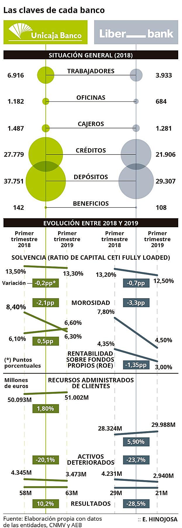 No habrá integración de Unicaja y Liberbank, una operación que se perfilaba como la primera fusión en años protagonizada por la banca mediana. ... Las discrepancias insalvables en torno a la ecuación de canje para el reparto accionarial que iba a determinar la cuota de poder de cada banco en la entidad resultante han dado al traste con un proceso que habría dado lugar a la sexta entidad del país, con 97.000 millones en activos. Ambas entidades comunicaron ayer que daban por rotas, con el respaldo unánime de sus consejos de administración, unas negociaciones que se encontraban en su recta final después de cinco meses de contactos y con las auditorías de venta ('due diligence') ya concluidas a la espera del acuerdo. La 'línea roja' del 60% del accionariado defendida como irrenunciable por Unicaja en la futura entidad ha chocado con la pretensión de Liberbank durante toda la negociación de arrancar una cuota superior al 40% en detrimento de la posición del banco malagueño. Oceanwood, el principal accionista de Liberbank con un 17% tras las fundaciones de las antiguas cajas de Asturias, Cantabria y Extremadura, que controlan el 24%, ha sido especialmente activo en la exigencia de un peso para Liberbank superior al 40 por ciento, una ponderación que desde el banco que preside Manuel Azuaga no respondería a los indicadores principales de Unicaja con activos por valor de 56.411 millones frente a 40.617 de Liberbank.