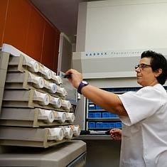 A través de señales visuales, que iluminan la localización, y auditivas, que fijan el número de fármacos, el sistema lee la prescripción del médico e indica al técnico de farmacia de dónde tiene que coger el medicamento en el almacén y en qué cajetilla tiene que depositarlo para un paciente concreto.