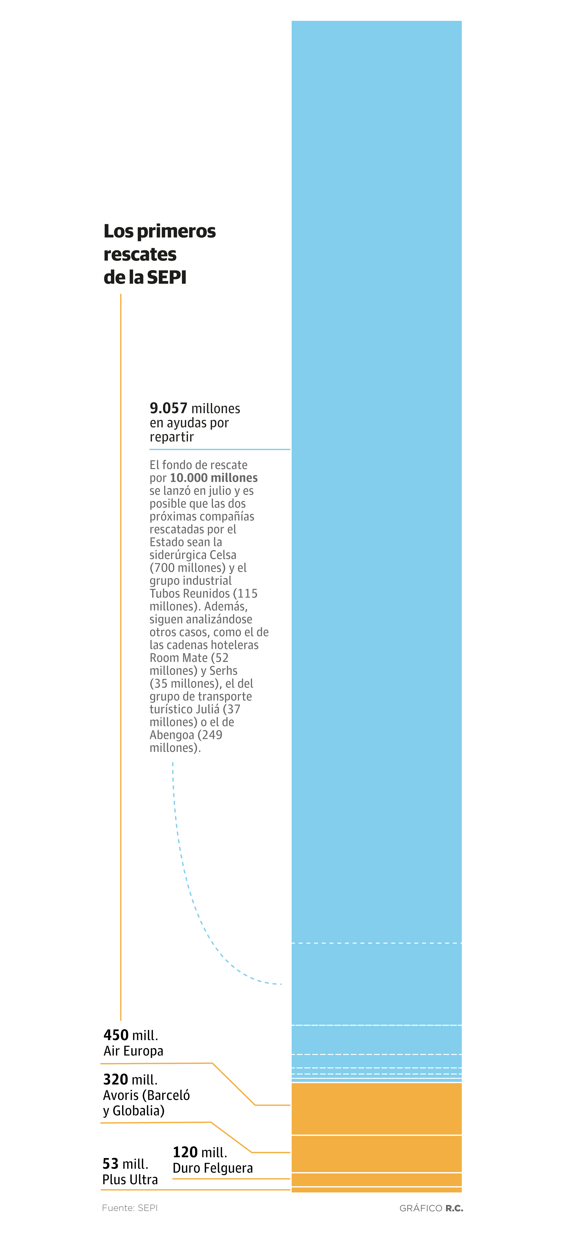 Ante la mayor crisis económica de España, la intervención estatal ha vuelto a hacerse necesaria -como ya ocurrió en 2008- para salvar a determinadas empresas. ... El Gobierno lanzó el pasado julio un fondo de rescate estatal con 10.000 millones para que las compañías que se ajustaran a los criterios establecidos no llegaran a quebrar.