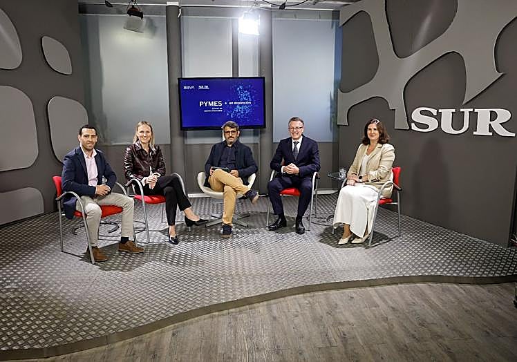 Para analizar en detalle las oportunidades y riesgos que enfrentan las pymes en su proceso de internacionalización, y compartir experiencias y estrategias de éxito, SUR y BBVA organizaron el pasado martes 5 la mesa de redacción 'Pymes en expansión: crecer en nuevos mercados'. Una charla informativa moderada por el periodista Álvaro Payo que contó con la participación de Juan José Sánchez Infante, director de Pymes de la Territorial Sur de BBVA; Mikaela Jonasson, socia fundadora y administradora de Linasson Group SL; Pablo Moreno Vargas, director de Operaciones en Claroflex y responsable de Negocio en Claroflex Do Brasil; y Esther Martínez Reyes, responsable del departamento de Comercio Exterior de la Cámara Oficial de Comercio de Málaga.