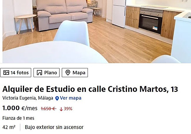 Hay otros casos llamativos en Idealista que dan idea del delirio al que han llegado algunos propietarios en la ciudad. Un bajo de 42 metros cuadrados en Miraflores de los Ángeles (uno de tantos locales reconvertidos en viviendas) se ofrecía hasta hace poco por 1.650 euros al mes. La propiedad ha recapacitado y ahora pide 1.000 euros, aunque advierte de que el contrato será de corta temporada y en los meses de verano el precio pasará a ser del importe originario de 1.650 euros.