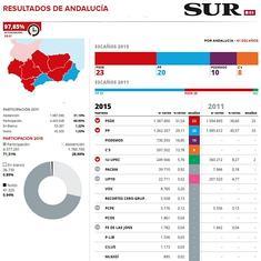 Por su parte, el PP consigue 20 diputados -13 menos que en las pasadas generales- y el 29,12 por ciento de votos. Podemos logra diez diputados en sus primeros comicios generales en Andalucía con un apoyo del 16,84 por ciento, mientras que Ciudadanos (C's) alcanza los ocho escaños en su estreno, con un respaldo del 13,77 por ciento.