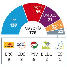 Lejos de retroceder, los viejos partidos han reforzado sus posiciones. Entre populares y socialistas suman 222 de los 350 legisladores de la Cámara baja, nueve más que los que consiguieron el 20 de diciembre. Una mayoría que, de todas maneras, está muy alejada del control abrumador que ejercían hace solo cinco años. En las elecciones de 2011, PP y PSOE sumaron 323 diputados, cien más que ahora.