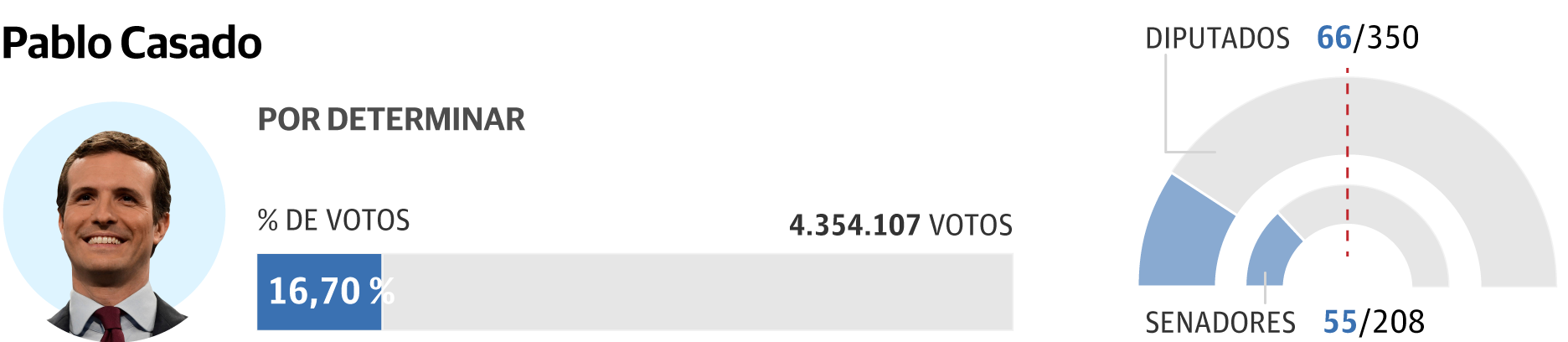 El PP ha obtenido este 28-A el peor resultado en unas elecciones generales desde que lleva ese nombre. Los 66 diputados que ha conseguido ... la formación conservadora dibujan una sangría de votos sin precedentes en favor de Ciudadanos, que mejora su último registro con 57 escaños, y de Vox, que irrumpe en el Congreso con 23 asientos.