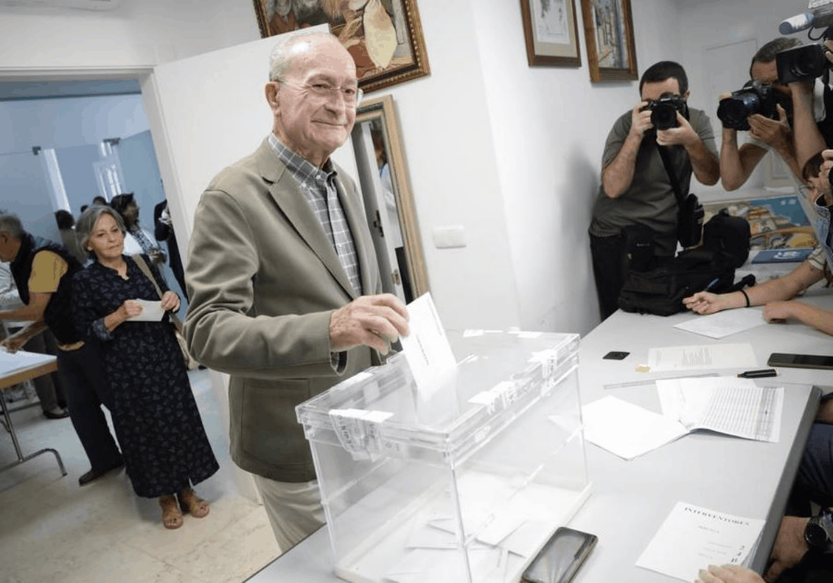 De los representantes públicos que optan a la Alcaldía de Málaga, el primero en ejercer su derecho ha sido el candidato de Vox, Antonio Alcázar, que ha acudido a su colegio electoral a las 9.15 horas. A continuación, el hasta ahora alcalde y candidato del PP, Francisco de la Torre, ha sido el siguiente (a las 9.30 horas). A las 10 está previsto que lo haga la concejala de Ciudadanos, Noelia Losada; a las 10.30 el del PSOE, Daniel Pérez, y a las 10.45 la de Con Málaga, Toni Morillas.