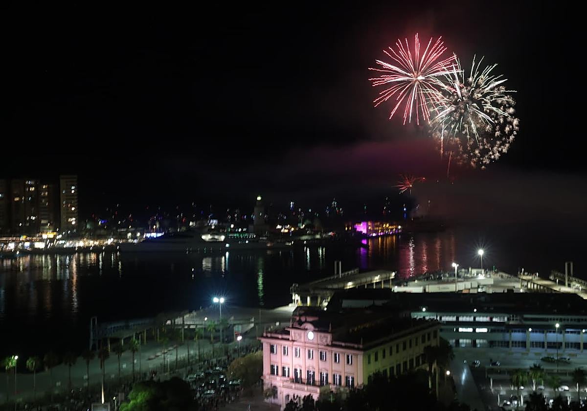 Cuando el último dron se posó en tierra y la jornada del festivo viernes dio el testigo al sábado, primer día de feria, el protagonismo sobre el cielo estrellado de Málaga lo tomaron los fuegos artificiales. En un espectáculo piromusical montado por la empresa Pirotecnia Zaragozana en la zona de la carretera de acceso a la terminal de cruceros, se emplearon 6.308 unidades de disparo con una masa bruta de más de una tonelada de peso.