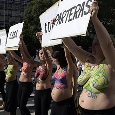 Con su desnudez enmascarada por coloridas pinturas, las activistas levantaron pancartas "por el derecho a elegir dónde y cómo parir" frente a la sede del Ministerio de Salud que estudia reglamentar la práctica. Según las activistas, las autoridades no las han invitado a las discusiones sobre la eventual reglamentación de las parturientas, que temen termine limitando su actividad.