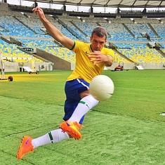 Posa en las redes sociales con la camiseta de Brasil en un rodaje publicitario