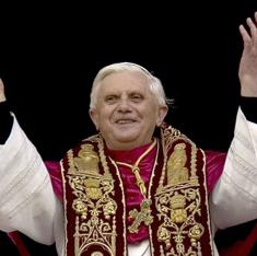 El cardenal Ratzinger, conocido como "guardián de la fe" por su condición de Prefecto de la Congregación para la Doctrina de la Fe, fue elegido como sucesor de Juan Pablo II el 19 de abril de 2005, cuando, según ha declarado posteriormente, ya "esperaba retirarse pacíficamente". Durante su primera aparición en el balcón de la Basílica de San Pedro se mostró sorprendido de que le hubieran elegido a él, "un simple y humilde trabajador de la viña del Señor".