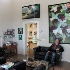 Quizá por eso los cuadros de gran formato, coloristas y luminosos que desfilan por las paredes de su casa y estudio interrogan al observante y escudriñan el alma hasta generar una sensación de insignificancia a la medida del ser humano. Insólitos huéspedes de un hogar con forma y detalles de cortijo andaluz, pero decorado con piezas de diseño, muchas de ellas nórdicas, en un conjunto equilibrado y armónico.