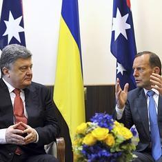 En una rueda de prensa conjunta con el presidente ucraniano, Petro Poroshenko, el primer ministro australiano, Tony Abbott, reafirmó el apoyo de su país a Ucrania por el derribo del MH17 en una zona de conflicto en el este de Ucrania, que mató a 298 personas, entre ellas 38 ciudadanos y residentes australianos.