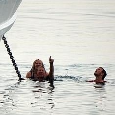 Antes de que la embarcación partiera de Lesbos, al menos tres activistas de Derechos Humanos se han lanzado al agua cerca del ferry, colgados de la cadena del ancla y haciendo el signo de la 'v' de victoria en un intento por evitar que el barco partiera del puerto de Mytilene hacia Turquía. Ambos han sido sacados del agua por los guardacostas griegos.
