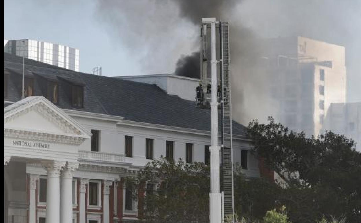 El incendio se ha originado en las oficinas de la tercera planta y se ha propagado hacia el gimnasio. La zona del tejado se ha incendiado y el edificio de la Asamblea Nacional también está ardiendo, según un comunicado recogido por el portal sudafricano News24.