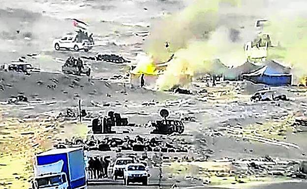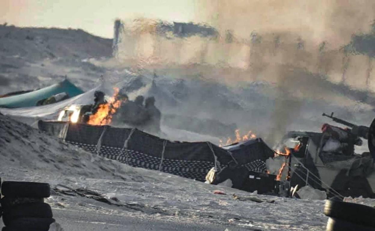 Imagen distribuida por el Ejército marroquí de los ataques del viernes, cerca del puesto fronterizo de El Garguerat. AFP