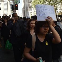 Miles de manifestantes se encuentran concentrados en el centro de Hong Kong desde el viernes convocados por organizaciones estudiantiles y el movimiento Occupy Central para exigir que en las elecciones a gobernador de 2017 puedan participar todos los candidatos que así lo deseen sin el filtro previo de un órgano electoral afín a Pekín.