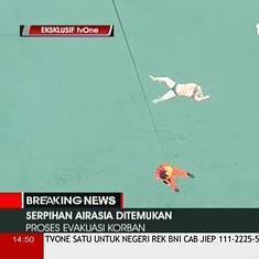 Poco antes, un pescador había encontrado restos que podrían ser una puerta y una rampa de emergencia a unos diez kilómetros de la última posición registrada por el radar aéreo. La televisión indonesia Kompas TV ha mostrado varias imágenes aéreas de dos objetos de gran tamaño flotando en el mar de color rojo y blanco, como el fuselaje de la compañía.