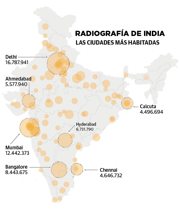 A ras de suelo, cuesta creer que India pueda ser algún día una superpotencia capaz de tutear a Japón o China. De hecho, en las mugrientas calles flanqueadas por edificios desconchados de cualquiera de sus ciudades a nadie le sorprende encontrarse con unas vacas chupando carteles pegados en una farola en medio de un caos circulatorio que desafía la razón. Y no muy lejos siempre hay algún tullido mendigando, o un grupo de niños semidesnudos chapoteando en aguas fétidas.