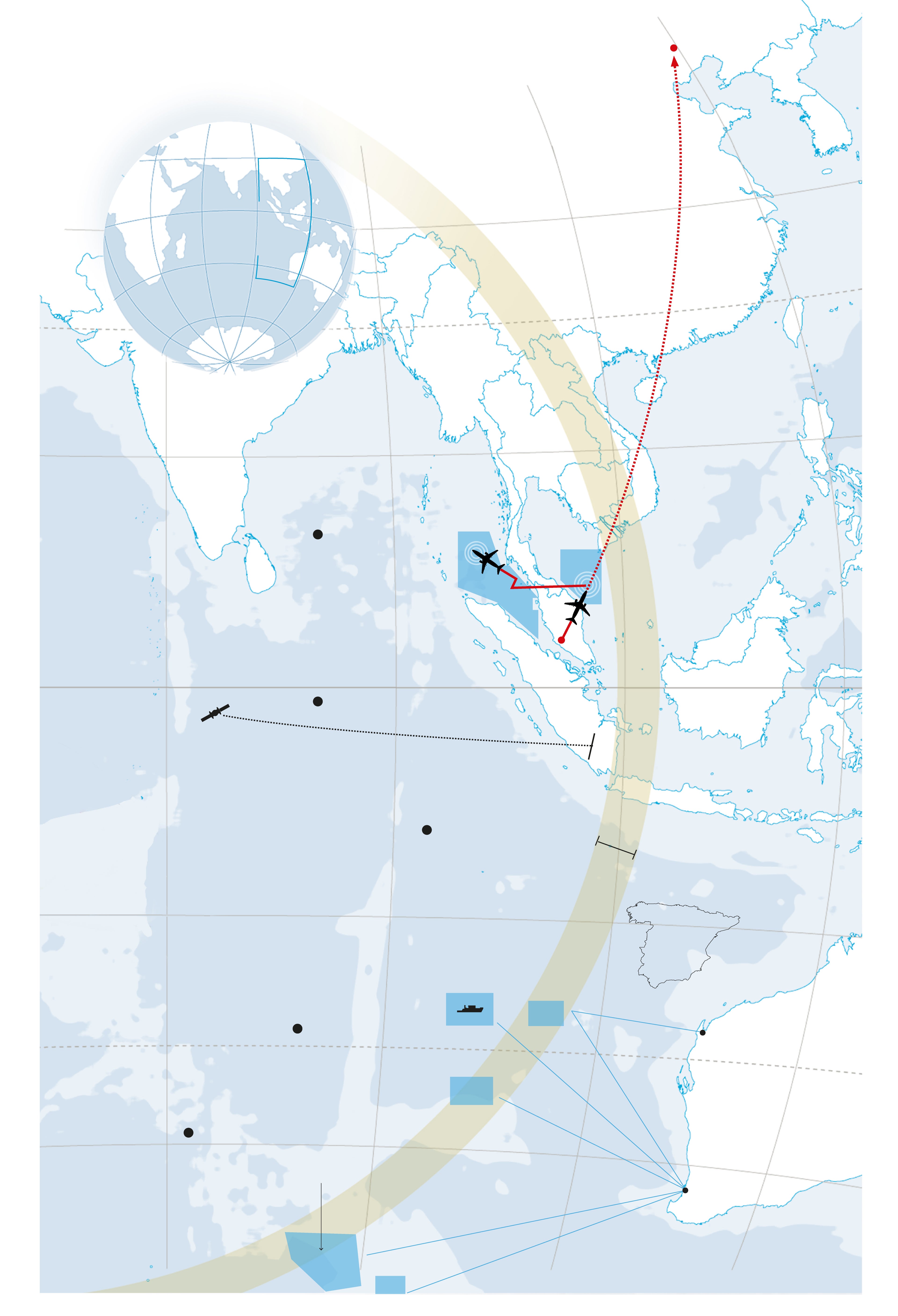 La búsqueda se centra en el Índico. Una señal captada por un satélite permite deducir la posición en la que se encontró en algún momento.