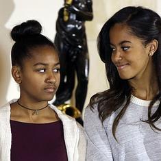 En la ceremonia, a la que acudieron junto a su padre, Malia, de 16 años, llevaba una minifalda de cuadros con un jersey gris, mientras que Sasha, de 13, lucía un vestido corto de color marrón con una chaqueta larga encima.