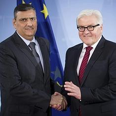 Riad Hijab (d), líder de la oposición moderada siria, saluda al ministro de Exteriores alemán, Frank-Walter Steinmeier.