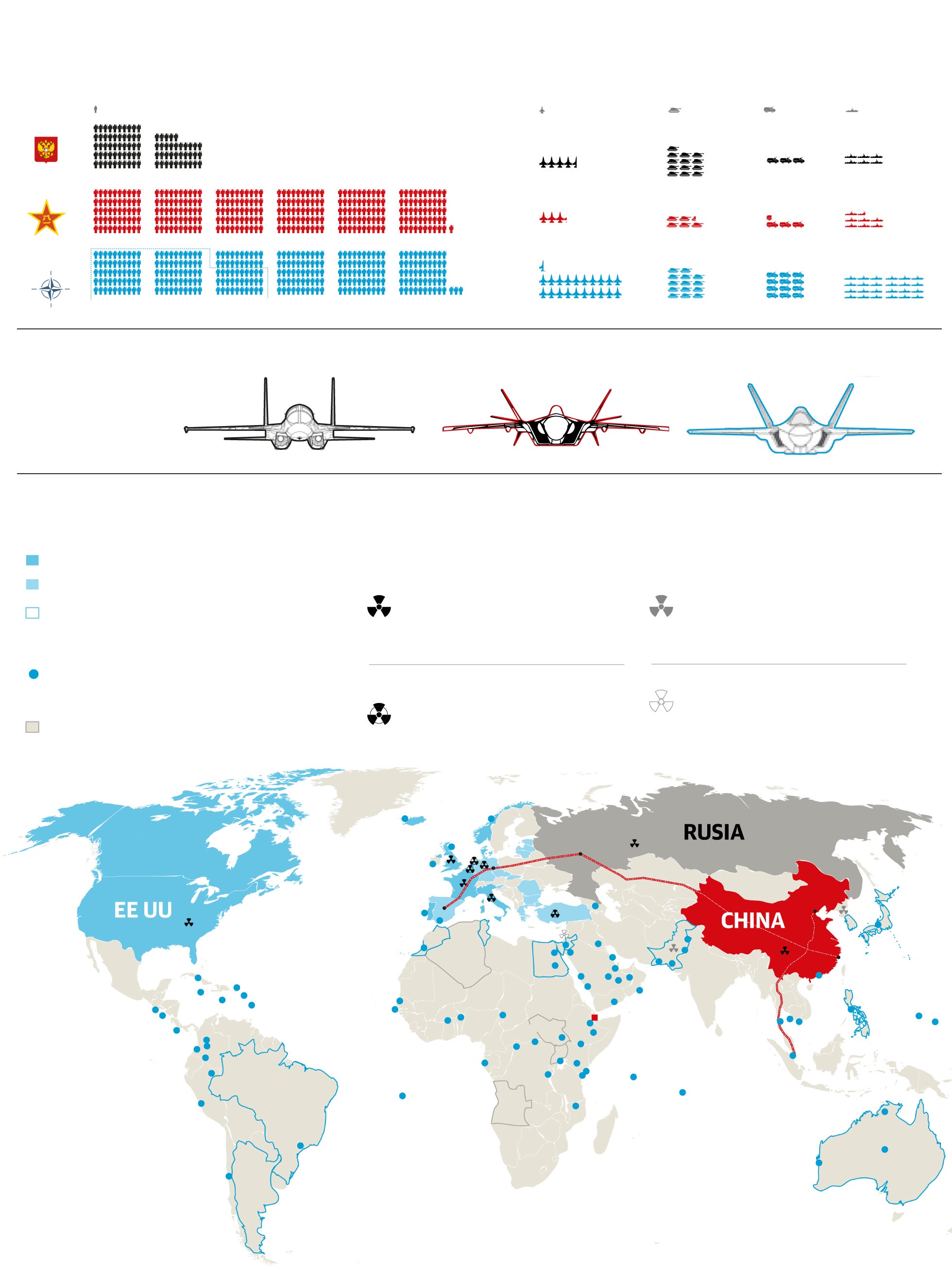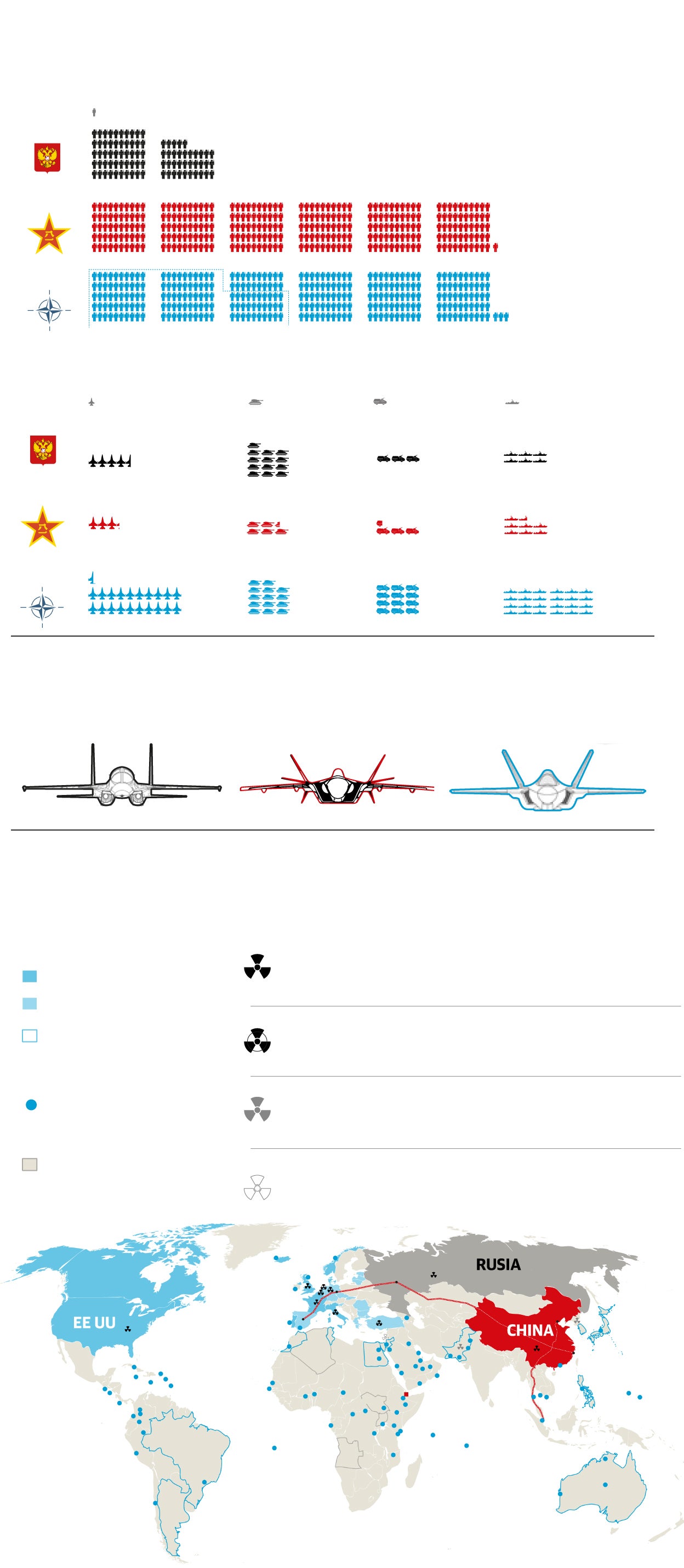 Aunque la OTAN posee una fuerza propia de unos 40.000soldados, se suman los datos de los países miembros del tratado
