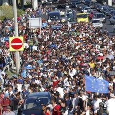 Cientos de refugiados parten caminando de Budapest con destino a Viena