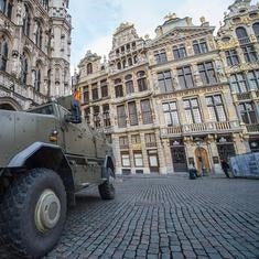 Un camión militar estacionado en la Grand Place de Bruselas.