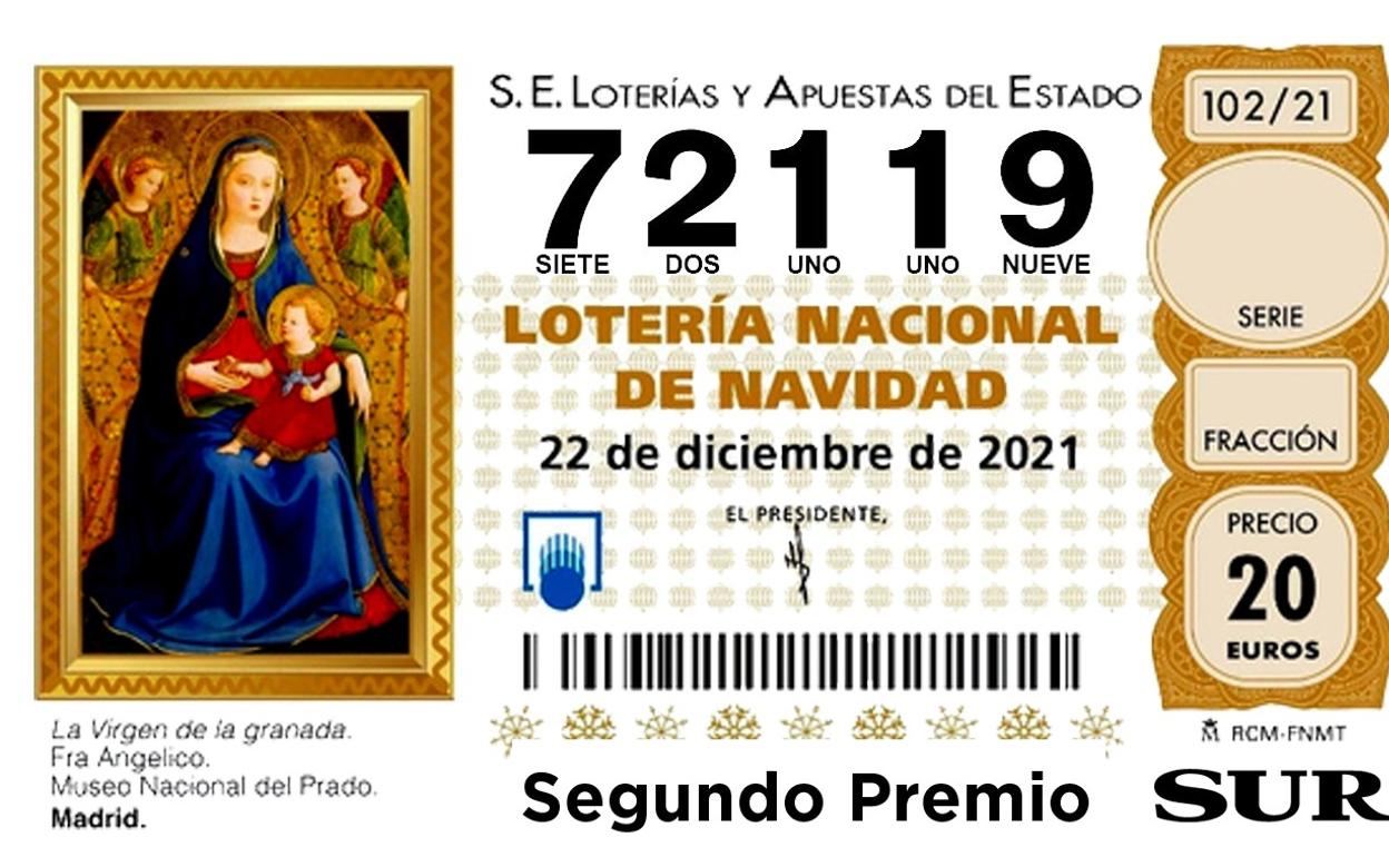 El 72.119, agraciado con el segundo premio del Sorteo de Navidad 2021, dotado de 1.250.000 euros la serie
