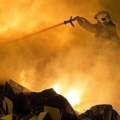 Los bomberos actúan como un pequeño escuadrón. «Esto es como el Ejército, es un cuerpo jerarquizado y todos tenemos claras las funciones», bromea uno de ellos. El número 1 es el que maneja la manguera, que, «a chorro libre» y a una presión de entre 10 y 15 bares (el conductor del camión es el que se encarga de ajustarla), profundiza más y acaba antes con el fuego. El número 2 le ayuda con un escardillo para llegar a los rescoldos y, entre todos, acaban con el incendio en 10 minutos. Los contenedores, en total 38 esta noche, la peor desde el inicio de la huelga, desaparecen por completo, pasto de las llamas. Pero los coches están a salvo. «Base para Delta 41, el fuego ya está apagado».