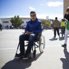 En su silla de ruedas acude cada día al IES Portada Alta, donde estudia primero de Bachillerato. Consiguió terminar ESO, en el IES Sagrado Corazón (ha cambiado de centro porque éste no tiene Bachillerato) y asistió al acto de graduación, en junio del año pasado. A profesores y compañeros tenía reservada una sorpresa: Alejandro acudió a recoger su diploma a pie. Era la primera vez en muchos meses que conseguía levantarse de la silla de ruedas.