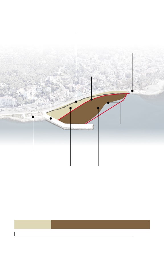 A su vez, se ha previsto la demolición de tramos de pavimento y bordillos antiguos en el acceso desde la punta de El Morlaco. También se actuará para reponer y reperfilar los huecos existentes y los bloques caídos en la escollera delante del actual muro de ribera del tramo peatonal entre el punto anterior y los Baños del Carmen. Parte de la escollera sobrante se podrá reutilizar para el tramo sumergido de la obra marítima.