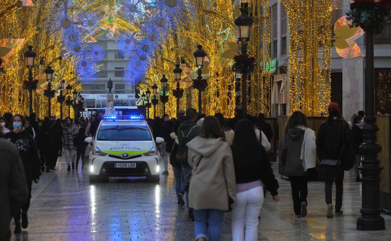 Una semana después de que Málaga encendiese su alumbrado navideño, el foco volvía a estar en calle Larios. Tras una inauguración descafeinada, sin espectáculo ... musical, pero con imágenes de aglomeraciones en momentos puntuales, el inicio ayer de un largo puente festivo hizo temer lo peor. Pero, las luces ya encendidas a las cinco de la tarde, a plena luz del día, y una intensa vigilancia policial evitaron en todo momento que se formaran grandes grupos de personas. La mayor afluencia de público, se produjo una hora después, cuando coincidieron en esta vía principal los viandantes y los clientes y trabajadores que salían de bares y comercios tras el cierre a las seis de la tarde impuesto por la pandemia del Covid-19. Sin embargo, el amplio dispositivo, con grupos de agentes repartidos a lo largo de toda la calle y el incesante paso de vehículos policiales (llegaron a coincidir hasta cinco) impidieron que se concentrase la gente y permitieron que se pudiera pasear con suficiente distancia. Solo veinte minutos después, la afluencia de público empezó a disminuir y, a las siete de la tarde, el trasiego se redujo considerablemente. También lo hizo la circulación de vehículos de la policía. «La gente se ha comportado y todo el mundo llevaba mascarilla. El paso de coches policiales ha ayudado a evitar concentraciones y no las habido en ningún momento», aseguraron fuentes de la Policía Local a pie de calle y que pudo constatar este periódico.