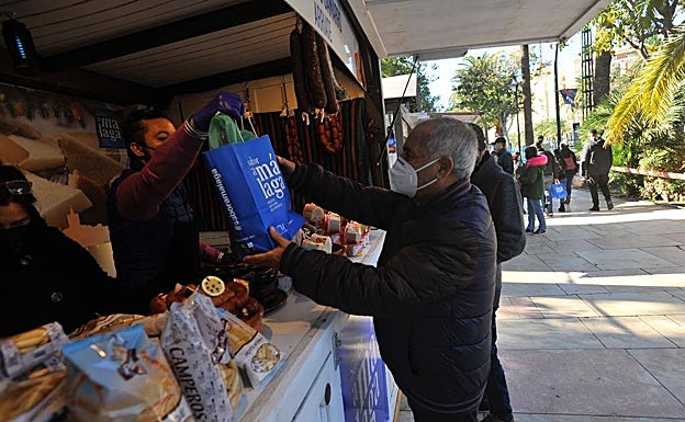 Con control de aforo (máximo 300 personas) y gel hidroalcohólico en las entradas, el Gran Mercado Sabor a Málaga nada tenía que ver ayer con las estampas de otros años. Con aforo casi completo en contadas ocasiones, no registró colas para entrar. Ni aglomeraciones alrededor de los puestos, ni empujones para degustar productos, ni prolongadas esperas para adquirir quesos, aceites, dulces o embutidos típicos de los pueblos de Málaga. La clave la apuntó José Luis Lucena, que se ha estrenado este año en esta cita gastronómica con su puesto Aceitunas Lucena, de Coín. «Hay poco público, pero es que la gente de los pueblos no puede venir y eso se nota», lamentó.
