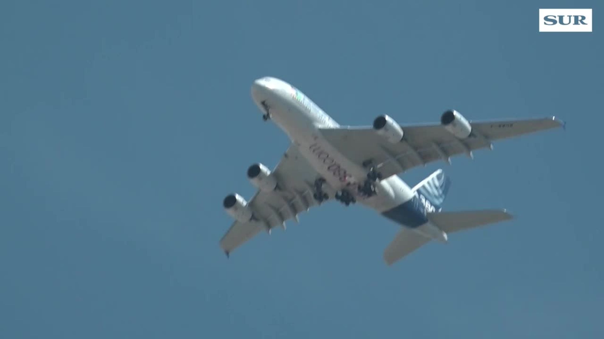 El Airbus A380, con capacidad para más de 500 pasajeros, estará haciendo maniobras en el Aeropuerto y sobre la Bahía a primera hora de la tarde