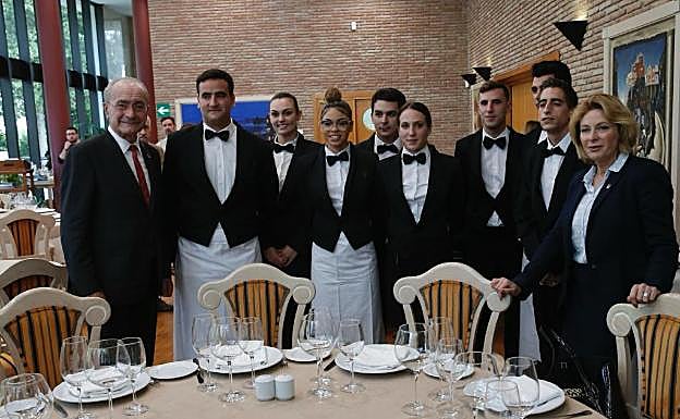 En el restaurante esperan para recibir a los clientes los alumnos de sala. Como Alicia Peguero, una joven malagueña de 20 años que al terminar Secundaria se puso a trabajar en el sector. Conoció la posibilidad de estudiar en La Cónsula y no dudó en solicitar una plaza. Se muestra «encantada» con la experiencia, con todo lo que está aprendiendo, y con muchas ganas de atender a los clientes que lleguen al restaurante. Su compañero Luis Miguel Rivas terminó Bachillerato y buscó una formación que le garantizase una inserción laboral. Afrontaba el servicio de ayer con tranquilidad, aunque algo nervioso por ser la apertura del restaurante. Este verano trabajó en Nerja, haciendo sus prácticas, y después lo contrataron para seguir prestando allí sus servicios. Una gran experiencia que, dijo, le ayudará en su futuro laboral.