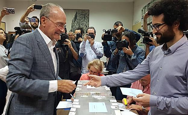 Pasaban apenas tres minutos de las 9.30 horas de este domingo cuando Francisco de la Torre ha ejercido su derecho al voto en medio ... de una gran expectación mediática en el colegio electoral situado en el Palacio de la Tinta de la capital. Acompañado de su esposa, Rosa Francia, y el coordinador de su campaña electoral, Carlos Conde, el alcalde de Málaga y candidato del PP a la reelección ha apelado a que haya una alta participación en este día «importante para la política, para la democracia española».