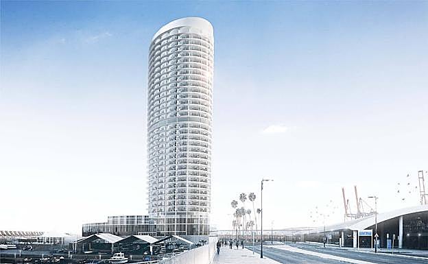 Siguiendo la línea marítima hacia el oeste, la plataforma generada en el dique de Levante del puerto, junto a la estación marítima de cruceros, espera la posible construcción de un hotel que, al tiempo que ampliará la infraestructura de alojamientos turísticos de la ciudad, supondrá un nuevo hito arquitectónico para Málaga con sus 135 metros de altura, según el diseño del estudio de José Seguí. Aunque el proyecto se ha reactivado especialmente en los últimos años, a raíz del interés de un grupo inversor catarí por promoverlo, la idea se lleva barajando desde hace 20 años, cuando ya había otros empresarios interesados en desarrollarla.