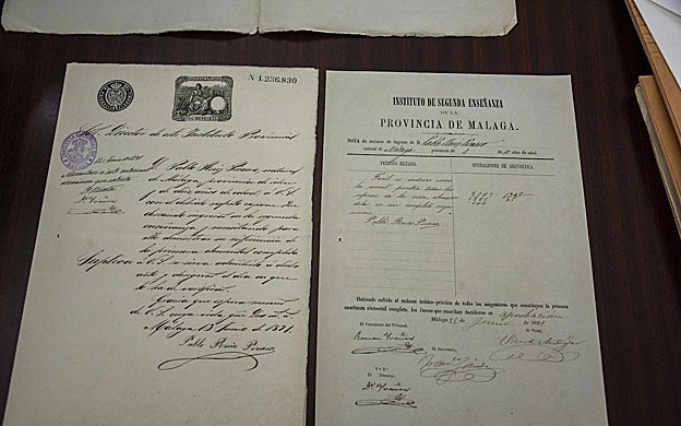 FRANCIS SILVA El archivo conserva el examen de Pablo Picasso, en 1891, así como la solicitud de ingreso en el instituto. Tenía entonces 10 años y realizó una pequeña redacción y una división. Fue admitido y se llegó a matricular, por solo estuvo en el instituto seis días pues su familia se trasladó a La Coruña.