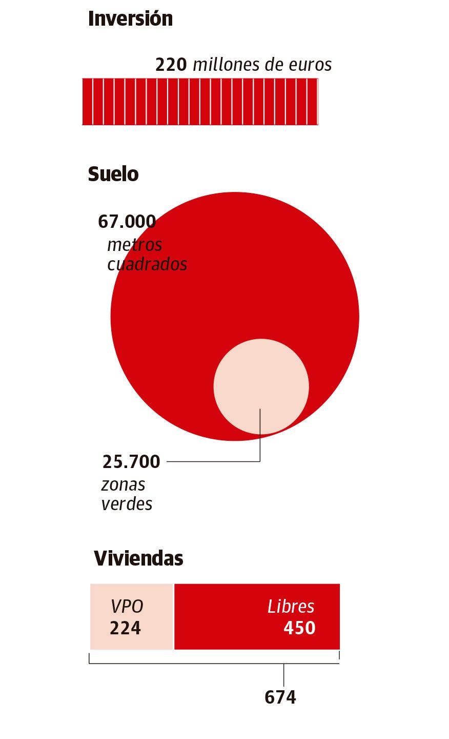 Contempla una promoción de 224 VPO que ya está en obras al sur de la parcela de Citesa, en la que también se realizará un parque; y dos rascacielos de treinta plantas para 450 pisos, junto a un centro comercial y de oficinas, en lo que fue el rastro.