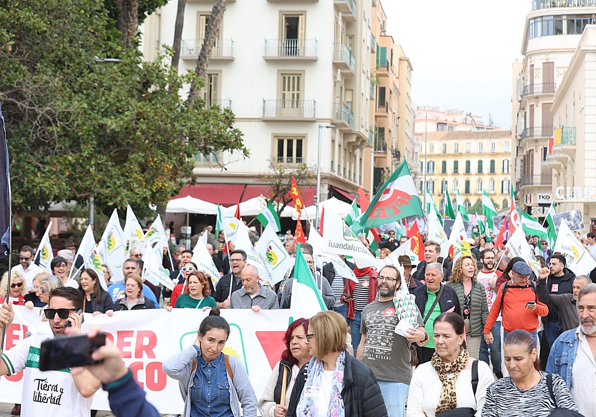 Esta movilización fue ideada por los grupos políticos mencionados al inicio de esta información. Que estuviera politizada no se escondió en ningún momento. En el mar de banderas andaluzas que ondeaban, la mayoría estaban identificadas con el nombre de los respectivos partidos políticos. En esta protesta, que discurrió sin ningún tipo de altercados, se pudieron ver también banderas republicanas y de Palestina. «Andalucía está con Palestina», se coreó con fuerza.
