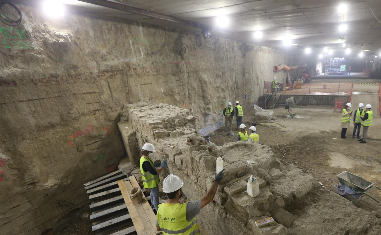 Los restos han aparecido frente a la sede de la Agencia Tributaria, pegados al puente de Tetuán, según ha podido comprobar SUR esta mañana durante una visita a las obras. Se corresponden con el primer nivel de excavación, de los tres con que cuenta el cajón subterráneo en este punto, por lo que no afectará al paso de los trenes (que circularán por el menos tres), según explica Miguel Ángel García Cañizares, gerente de Proyectos y Obras de la Agencia de Obra Pública de la Junta de Andalucía. Los restos están a unos siete metros de profundidad y el tercer nivel está a menos 18.